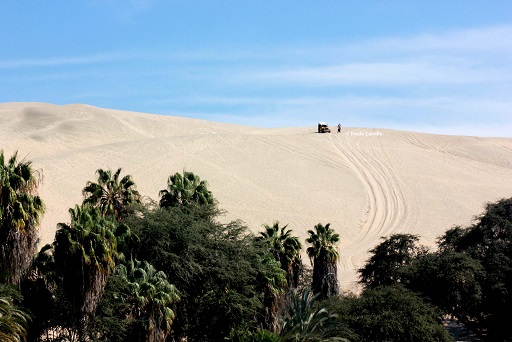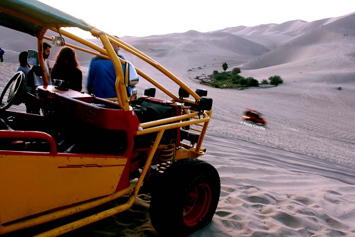 Digo “chocó” porque la forma de transitar en él no es tan paradisíaca para quienes tememos a las alturas. De “sana” -como decimos en Colombia-, terminé inocentemente en el oasis de Huacachina (Ica), desde donde me adentraría en el desierto sobre un carro tubular, junto con otros siete turistas que había por ahí.