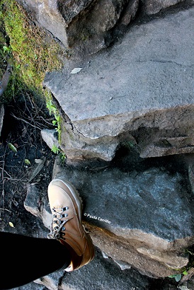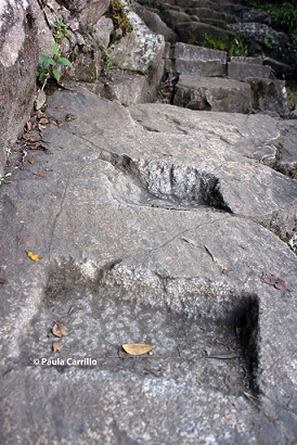Mi amiga hizo el intento de subir pero no pudo porque se torció el pie justo antes del viaje, así que de nuevo, tuve que enfrentarme sola con mis demonios. La subida comenzaba. Las escalas eran desiguales, no muy anchas. A veces había que subirlas de lado porque, como buena "liliputiense", mi pie no cabía. Los incas que tallaron la piedra definitivamente no calzaban 41, a juzgar por el tamaño de los escaloncitos.